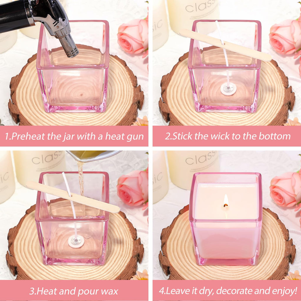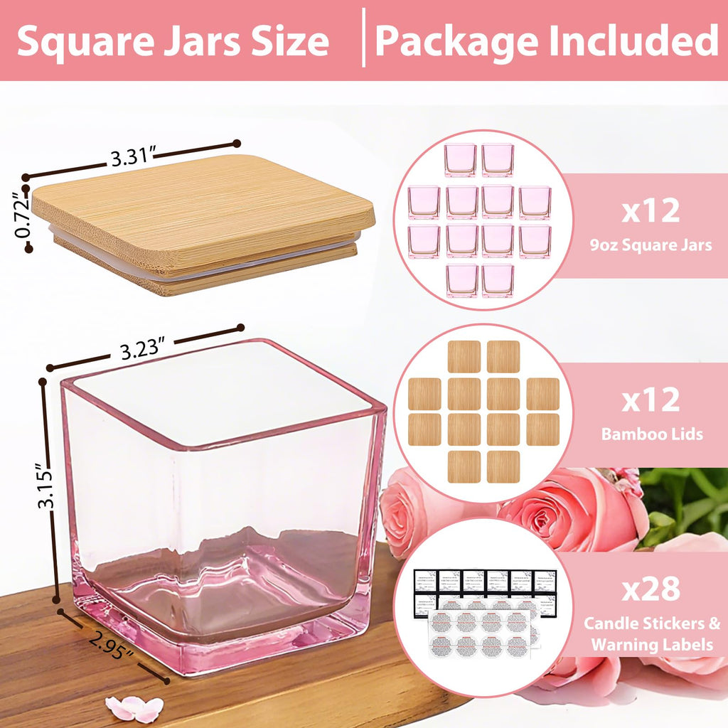 - 【Package Include】 You’ll get 12pcs 9oz Pink square glass candle jars with bamboo lids, 12 candle label stickers and 16 warning labels. The unique square design adds a refined touch, making these jars perfect for DIY beginners, thoughtful gifts, or small candle-making businesses.