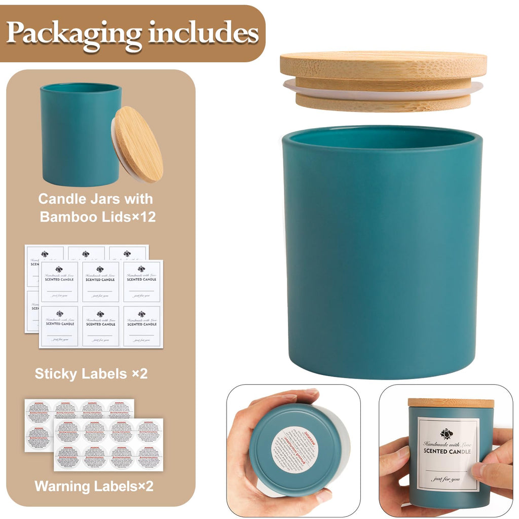 - ⭐️Value Pack: You will get 12pcs 10 oz navy blue glass candle jars with bamboo lids and 12pcs sticky labels and 16pcs warning labels. A nice buy for DIY family or selling.