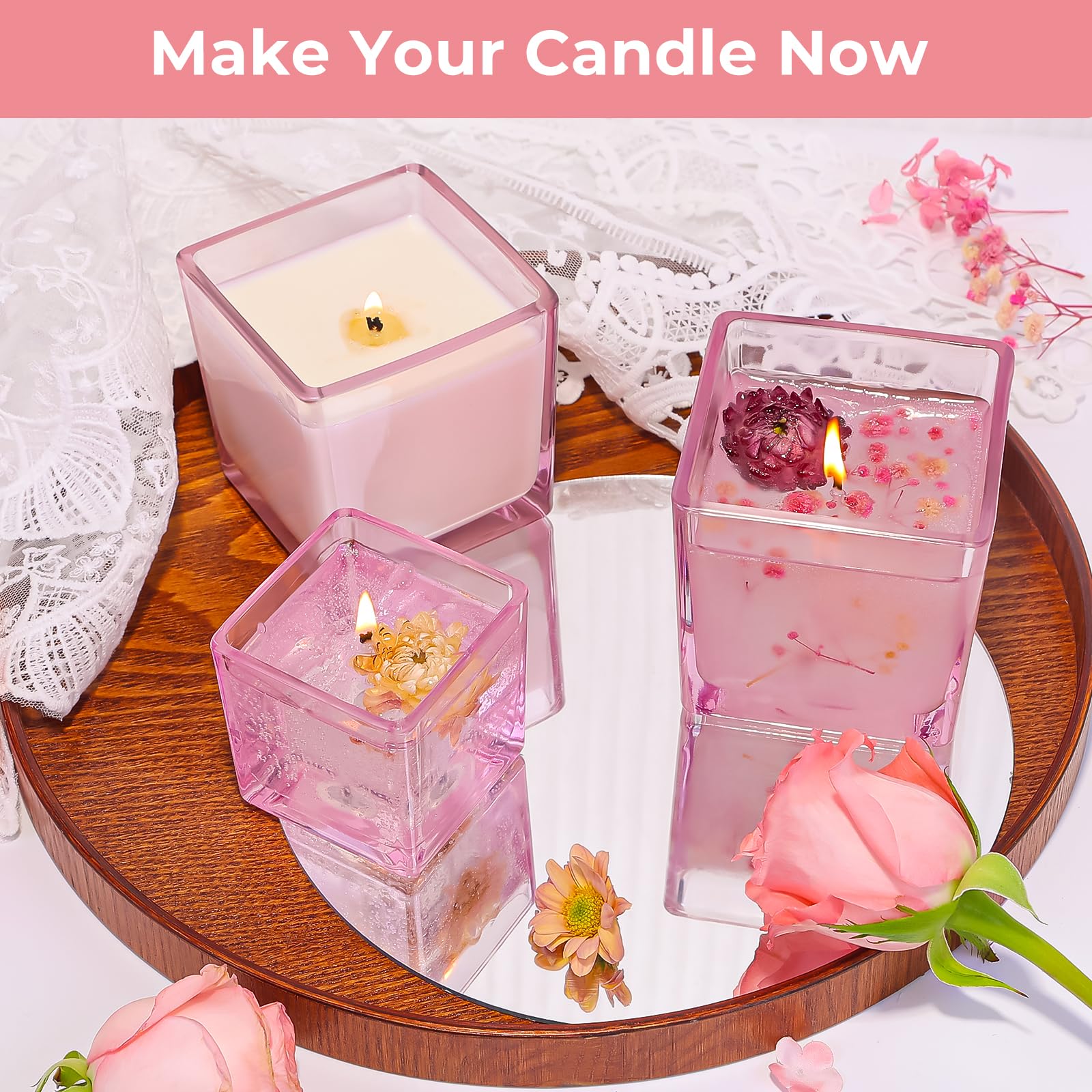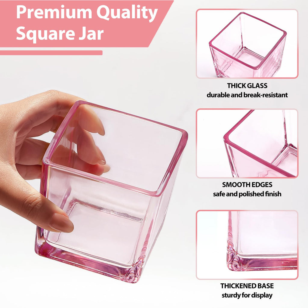 • 【Durable Thick Glass】 Made from premium 5mm thick glass, these square candle containers are heat-resistant for safety and long-lasting use. The thick glass gives them a premium, refined look, while the sturdy, weighted base ensures stability and durability. Perfect for holding and displaying candles, they combine elegance with strength.