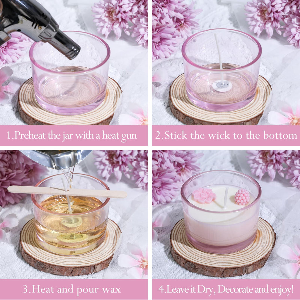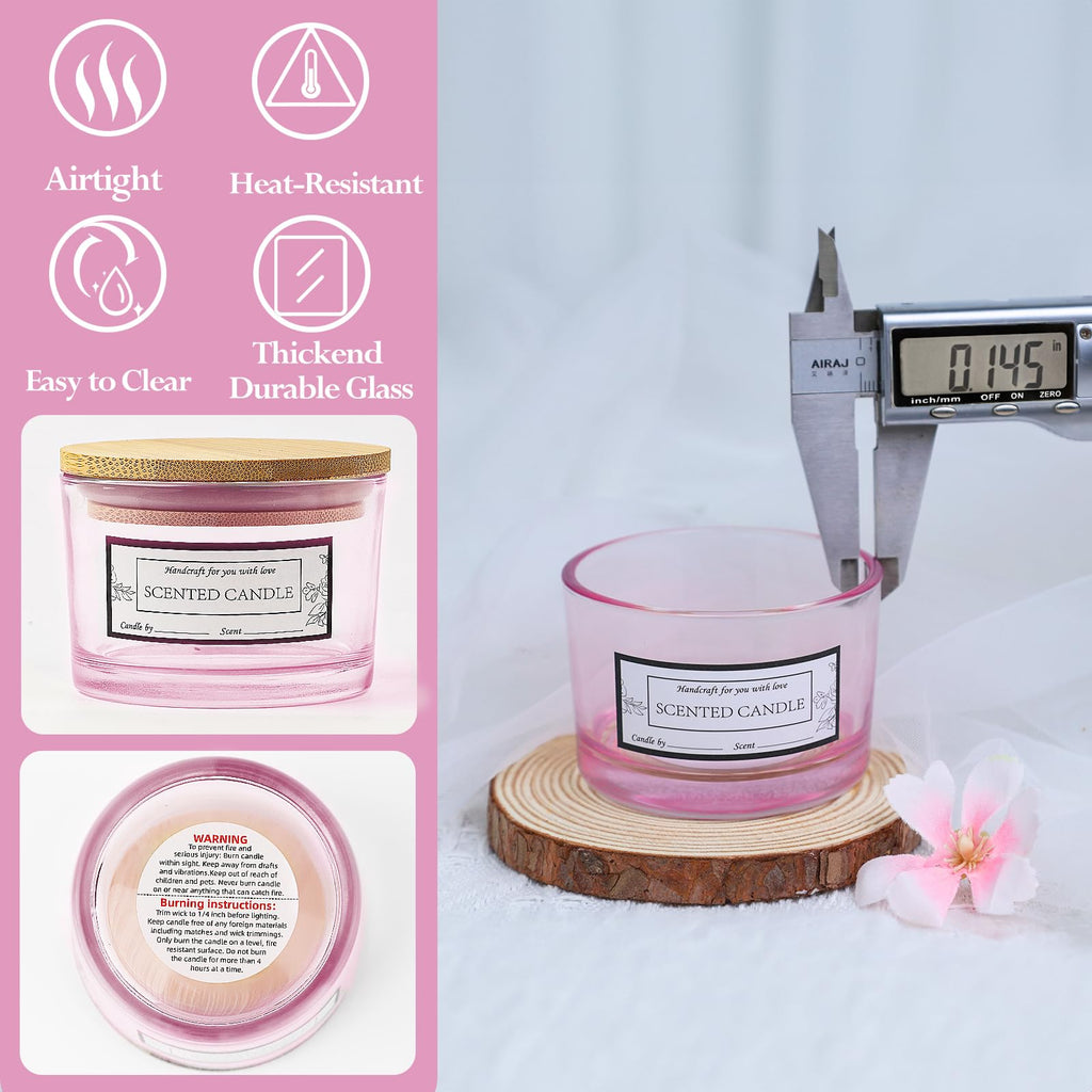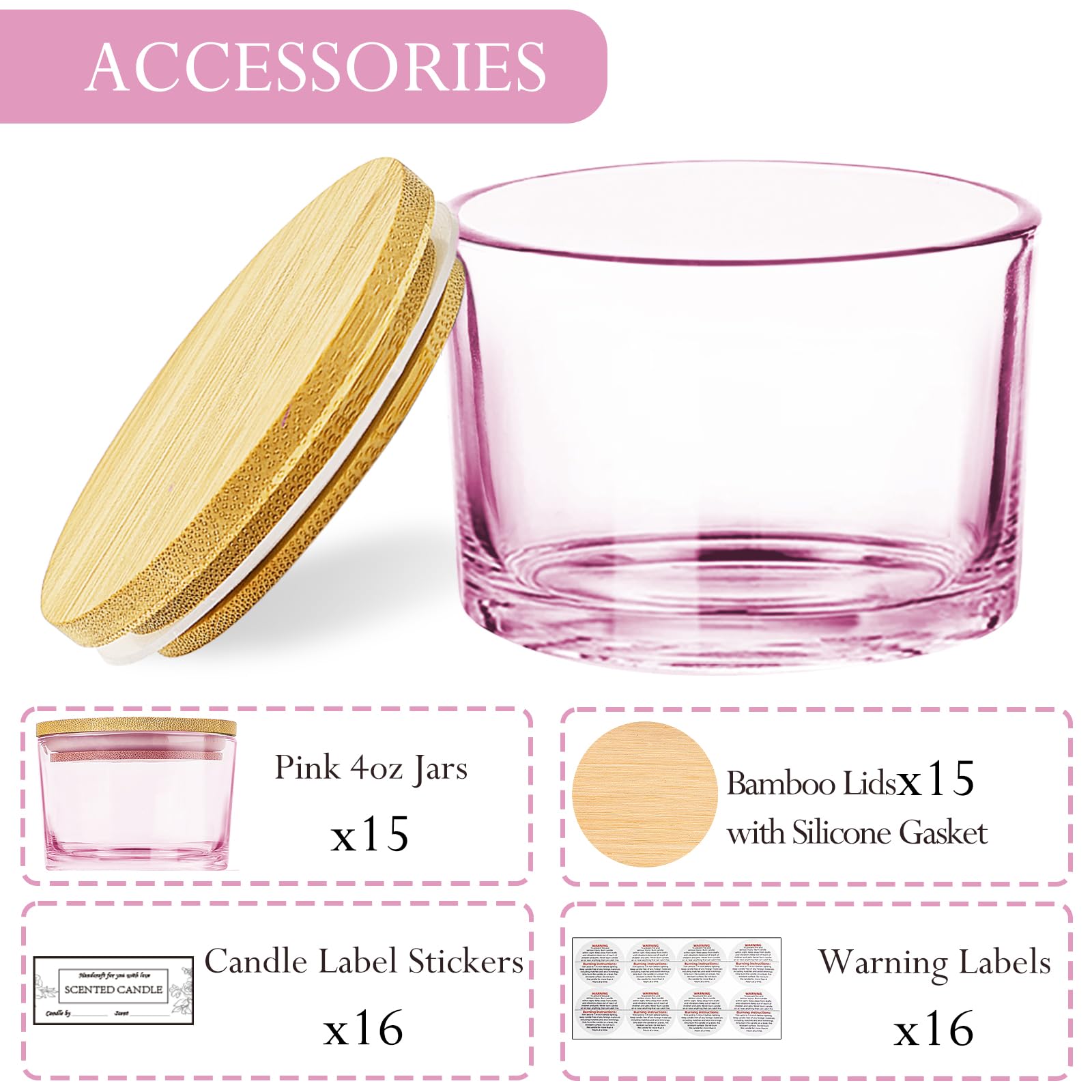 - Value Candle Making Supplies Pack: 15 Pcs wide mouth 4oz empty pink candle jars with bamboo lids, 16 Scented Candle sticker labels and 16 candle warning labels. Suitable for DIY homemade candle starters and candle making business.