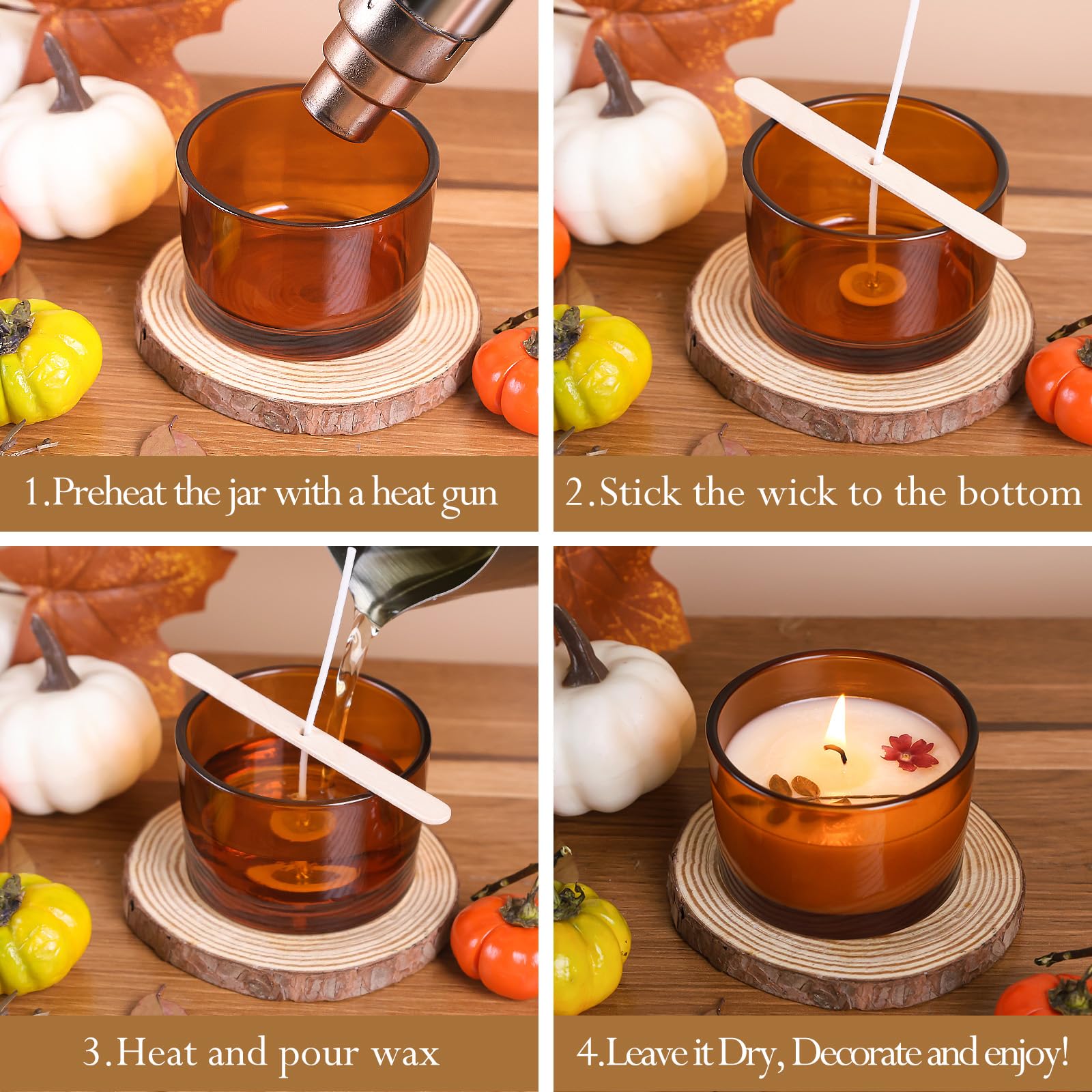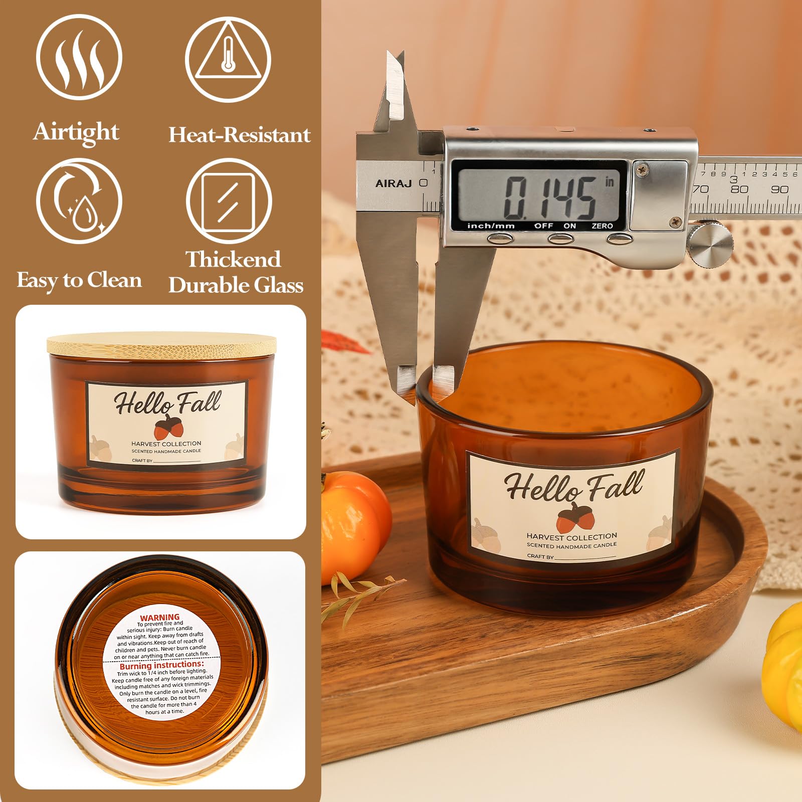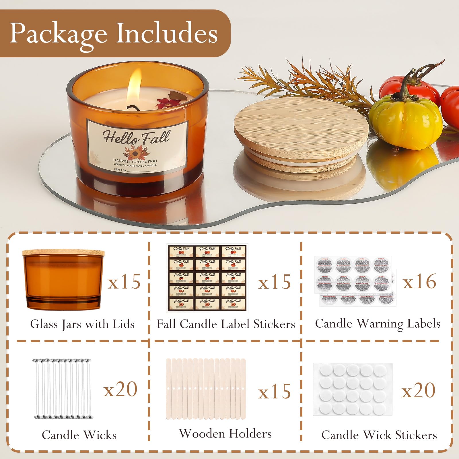 • 🎃Complete Candle Making Kit: Includes 15×4oz fall glass candle jars with bamboo lids, 15 fall candle label stickers, 20 wicks with stickers, 15 wooden holders, and 16 warning labels. All-in-one set for DIY beginners, small candle businesses, or adding cozy fall charm to your home décor—no extra supplies needed.