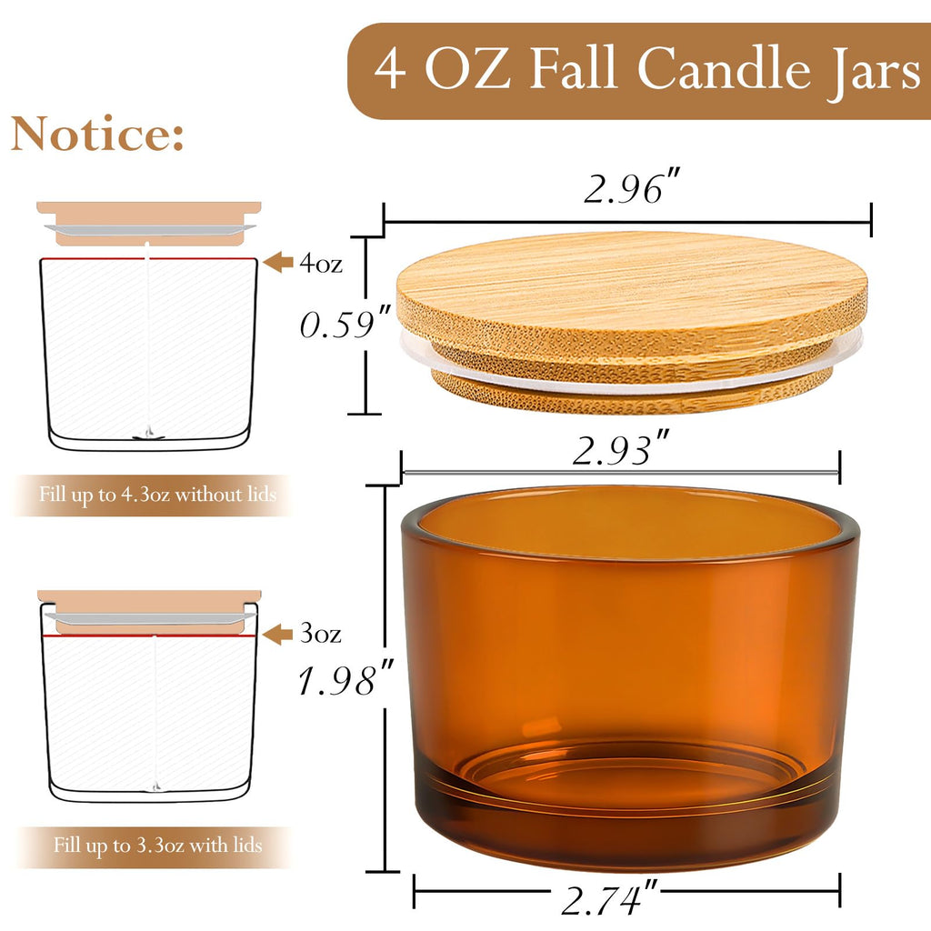 • 🌟High Quality & Easy to Clean: Our 4oz candle containers are made from thick, high-quality glass with reinforced bottoms and durable 0.14" walls, ensuring heat resistance, strength, and safety. Each jar comes with an airtight bamboo lid to keep candles dust-free and preserve fragrance. Reusable and dishwasher safe, these jars are easy to clean and designed for long-lasting use.
