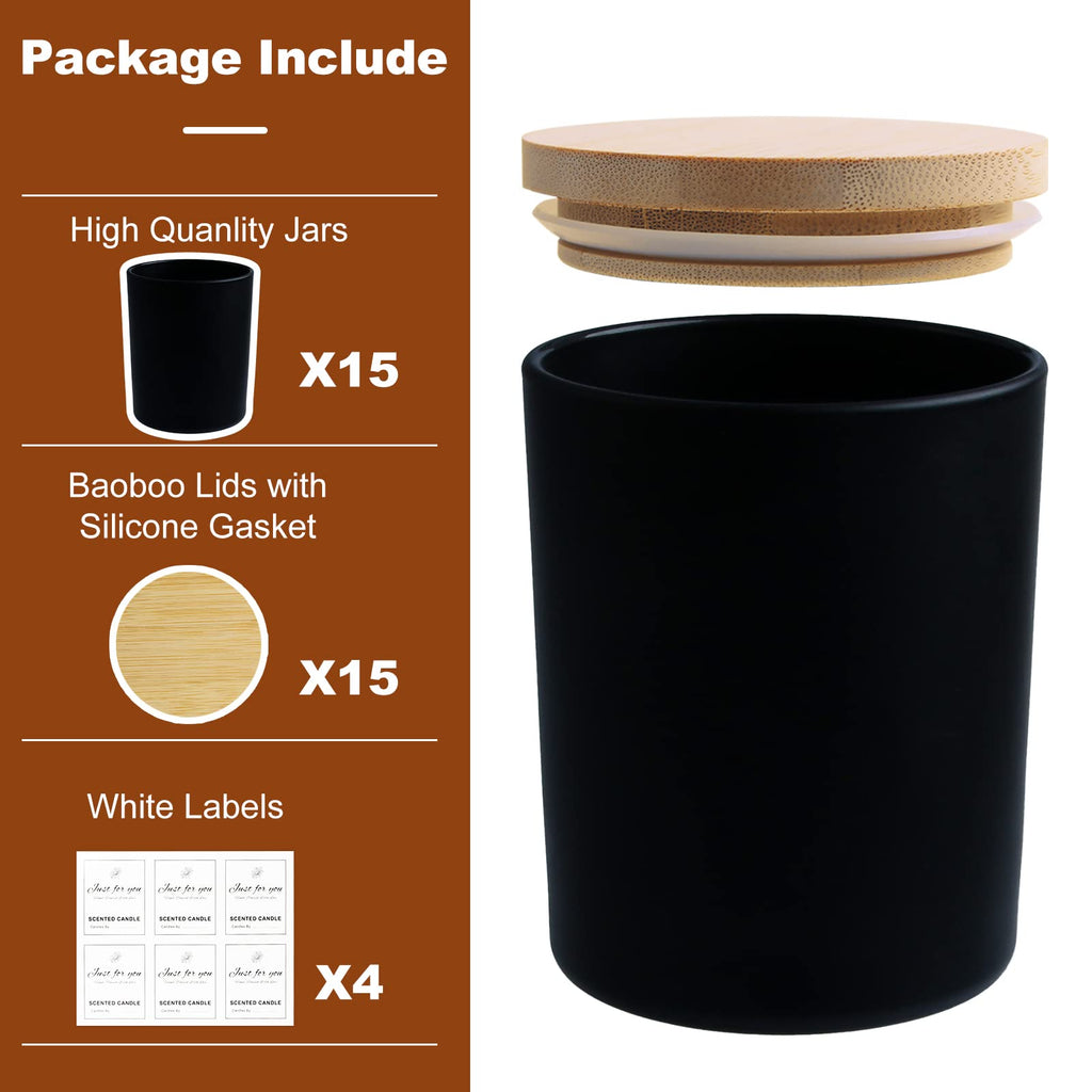 CONNOO 15 Pack 7 OZ Halloween Candle Jars with Bamboo Lids for Making Candles, Thick Black Glass Candle Jars Empty Jars in Bulk with lids - Dishwasher Safe