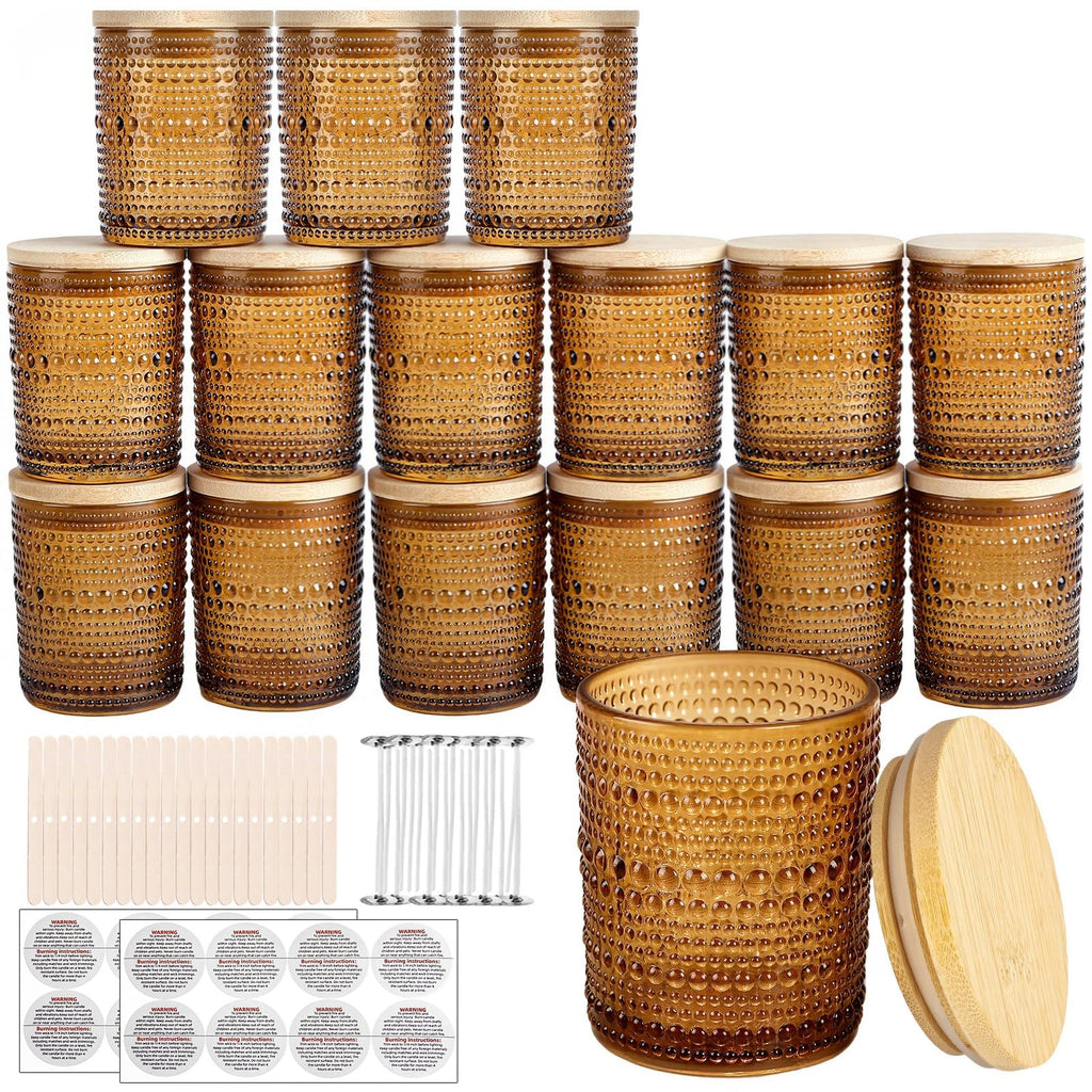 CONNOO 16pcs Pearl Candle Glass Jars with Natural Bamboo Lids, 7oz Thick Containers for Candle Making with Wicks & Stickers, Pearl Amber Jars for DIY Projects, Bulk Orders, Gifts & Home Décor