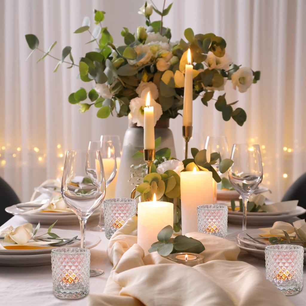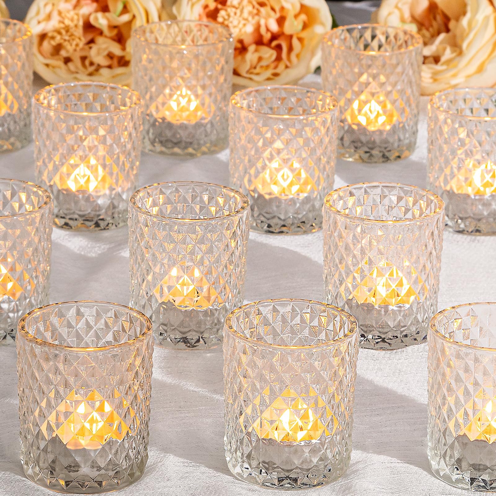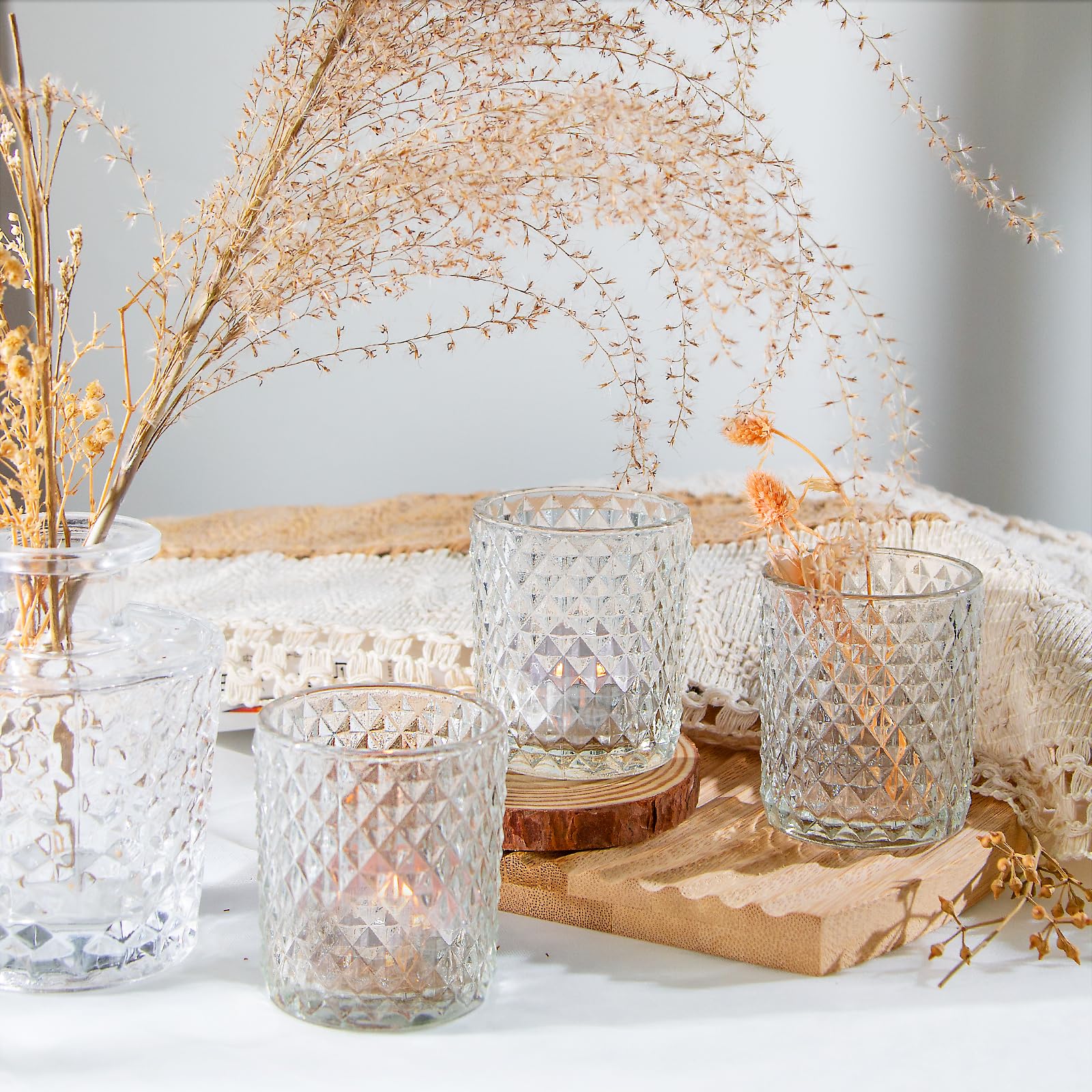 CONNOO 26 Pcs Votive Candle Holders, Clear Glass Holders Bulk for Table Centerpiece, Tea Lights Candle Holders for Wedding Shower, Party, Holiday and Home Decor