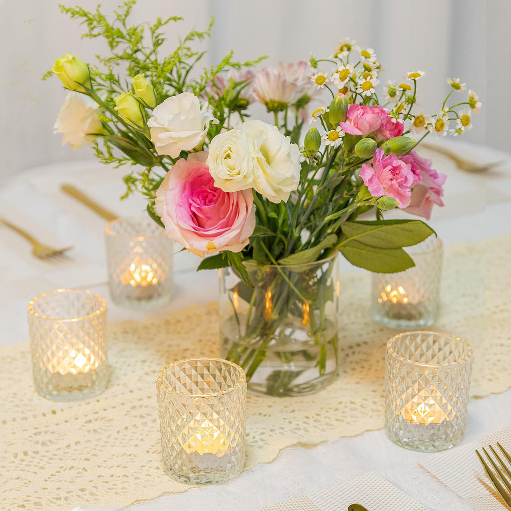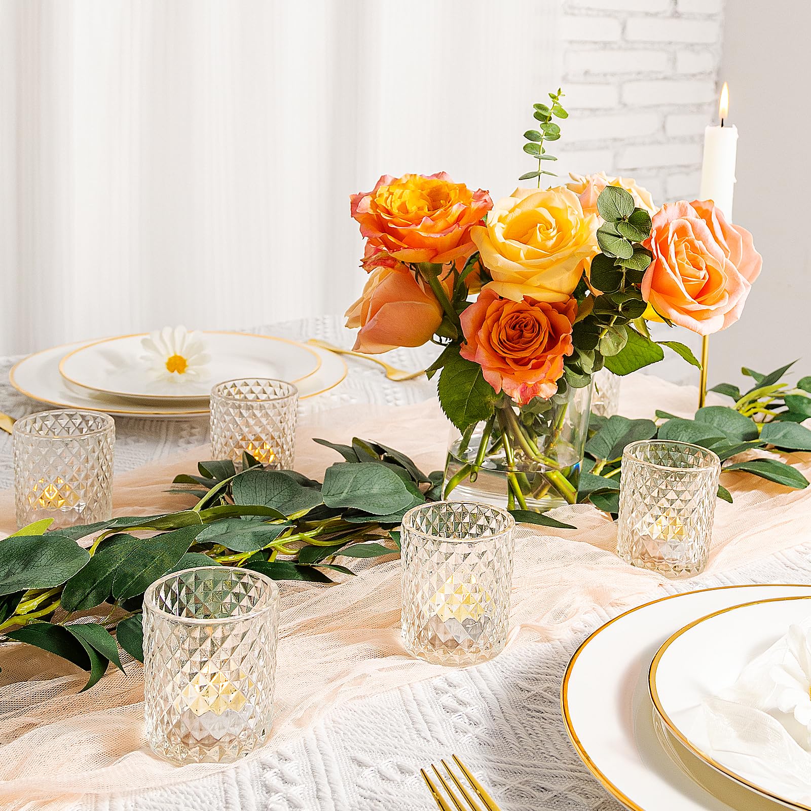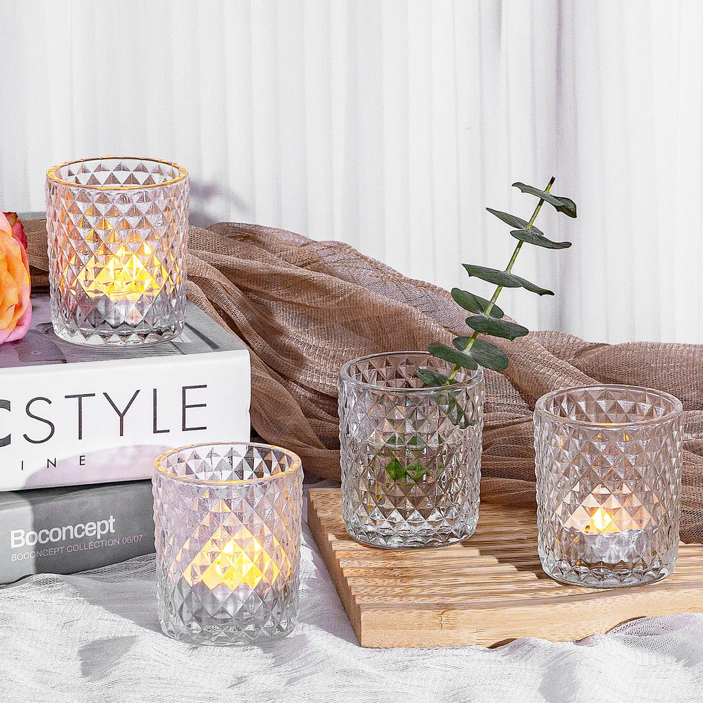 CONNOO 26 Pcs Votive Candle Holders, Clear Glass Holders Bulk for Table Centerpiece, Tea Lights Candle Holders for Wedding Shower, Party, Holiday and Home Decor